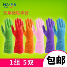 笑妈妈洗碗手套薄款橡胶厨房家务洗衣服耐用乳胶手套防水塑胶5双