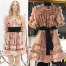 2017年夏季新款外贸高端欧洲站时尚走秀荷叶边蕾丝花边连衣裙女子