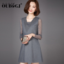OUBOGJ连衣裙春夏女装新款韩版宽松大码显瘦A字裙短款V领网纱长袖