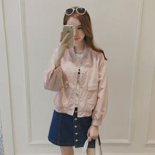 橙子诱惑2017春夏新款长袖宽松韩版立领单排扣短款棒球服薄款女装
