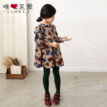 女童碎花长袖连衣裙春秋款儿童韩版童装休闲宝宝羊毛裙潮/JMFOP32