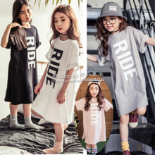 夏季女童装韩版纯棉印花宽松连衣裙中大童亲子装休闲长裙儿童裙子