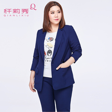 纤莉秀大码女装胖妹妹2017夏装新款翻领西装两件套装