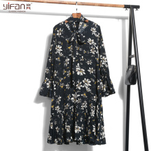 初春韩版复古雪纺长袖碎花连衣裙宽松显瘦喇叭袖中长款百褶裙女装