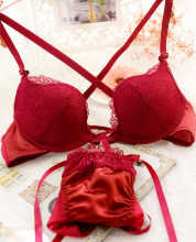 日系前搭扣绑带美背深V少女文胸 聚拢后交叉带性感蕾丝套装三角裤