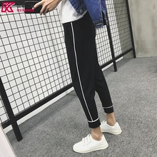 文艺男韩版夏季新款男士条纹小脚9分裤日系青少年哈伦裤运动卫裤