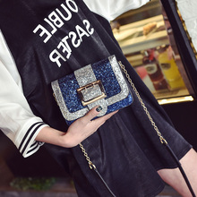 欧美时尚亮片小方包潮流皮带扣小包包女2017春季新款单肩包斜挎包