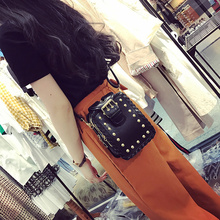 小包包2017新款女包皮带小方包三层铆钉民族风迷你链条单肩斜挎包