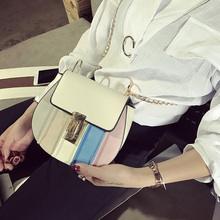 2017优质新款时尚磨砂条纹撞色小猪包春女士单肩斜跨小包链条包