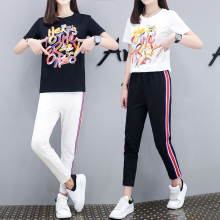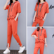 莱右大码女装胖mm夏装新款套装显瘦胖妹妹时尚卫衣九分裤两件套潮