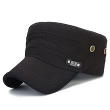 韩版春秋四季男式军帽时尚纯棉布平顶太阳帽成熟中年男士水洗帽子