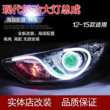 12-15现代朗动大灯总成 改装LED双光透镜泪眼天使眼氙气大灯定制