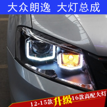 大众12-16款新朗逸大灯总成改装高配款氙气灯双U日行灯大灯总成