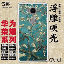 彩绘坊 华为荣耀4/5/6/7/8/X/A/C/i/plus浮雕手机硬外壳 梵高杏花