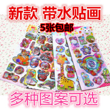 新款男孩女孩儿童卡通立体水贴画水晶可爱灌油摇动水贴纸5张包邮