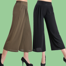 夏季妈妈装休闲裤高腰宽松阔腿裤中老年大码女裤中年雪纺九分裤子