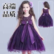A75钢琴表演出小主持走秀礼服蓬蓬网纱89102岁女儿童紫色连衣裙子