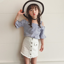 儿童裙子2017春装新款童装女童韩版磨边修身牛仔包臀裙中大童女
