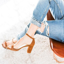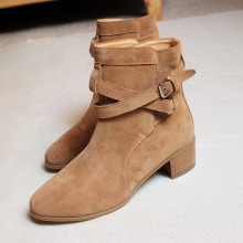【你想要的中跟】5厘米中跟短靴 交叉扣磨砂牛皮粗跟中跟短裸靴女