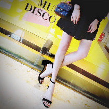 一字带凉鞋女夏2017新款韩版百搭学生羊皮粗跟露趾一字扣高跟鞋