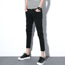 夏季新款薄款牛仔裤男士韩版潮流2017修身九分小脚裤百搭黑色裤子
