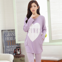 春秋季睡衣女长袖可爱卡通爱心韩版大码女士家居服新款休闲套装