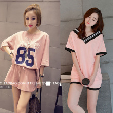 夏季女新款 女士卡通优雅简约 女运动睡衣休闲家居服套装 可外穿