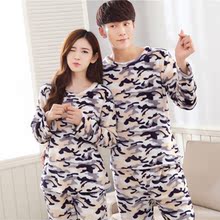 情侣睡衣男女秋冬季可爱珊瑚绒常规套头法兰绒睡衣卡通迷彩家居服