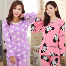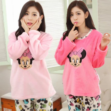 秋冬季睡衣甜美女士卡通韩版保暖法兰绒家居服休闲长袖可外穿套装