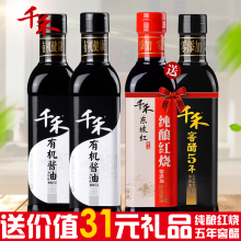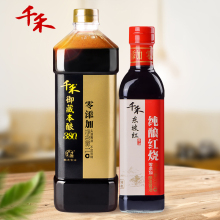 【送5年窖醋】千禾酱油 特级生抽1L*2+东坡红特级老抽 家庭量贩装