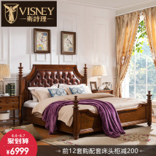 卫诗理美式家具TTJ 实木美式乡村真皮桃花心木双人床 M6