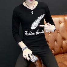 青少年潮流T恤男长袖韩版修身V领打底衫2017春季新款男装体恤上衣