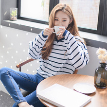 2017春装条纹宽松蝙蝠袖学生上衣打底衫女长袖T恤韩版外穿秋衣潮