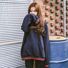 春装学院风拼接套头加绒卫衣女装韩版宽松学生秋冬春季外套上衣潮