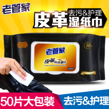 老管家皮革湿纸巾擦皮鞋巾带盖抽取式皮具清洁护理光亮去污50片装