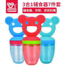 婴儿咬咬袋吃水果蔬菜乐果汁奶嘴辅食器宝宝牙胶磨牙棒玩具7件套