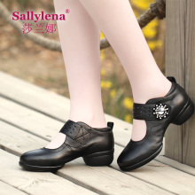 莎兰娜秋季舞蹈鞋女成人广场舞鞋真皮水兵舞鞋中跟软底女式跳舞鞋