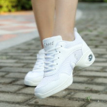 新款舞蹈鞋女式网面软底真皮广场舞鞋夏季白色跳舞鞋爵士现代舞鞋