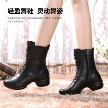春秋新款舞蹈靴子真皮加绒软底广场舞蹈鞋女式跳舞鞋水兵现代舞靴