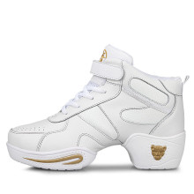 春季白色舞蹈鞋女软底增高爵士现代舞鞋真皮健美操运动广场跳舞鞋