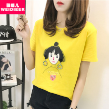 2017新款韩版夏装女装卡通印花女孩学生短袖T恤女休闲宽松上衣潮