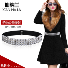 女士松紧珍珠羽绒服细腰带韩版百搭宽腰封配裙子装饰皮草水钻皮带