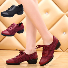 2016夏季新款女士舞蹈鞋牛皮网布现代跳舞鞋透气软底低帮广场舞鞋