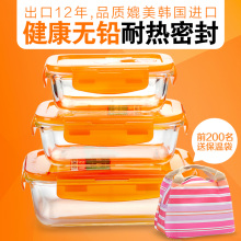 三件套装保鲜盒玻璃饭盒微波炉碗便当盒水果冰箱收纳盒密封盒带盖