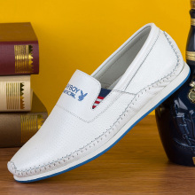花花公子男鞋夏季男土名牌白色真皮休闲鞋头层牛皮鞋软底豆豆鞋男