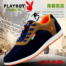 正品花花公子男鞋真皮男士休闲鞋土板鞋男悠闲鞋子翻毛皮黑色潮鞋