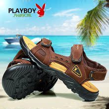 花花公子男士夏天罗马凉鞋真皮休闲鞋男土青年厚底沙滩鞋2016新款