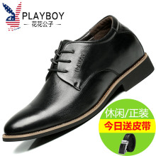 花花公子男鞋婚鞋子英伦黑色真皮男士商务休闲皮鞋隐形内增高6cm