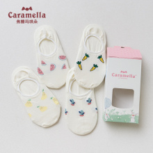 caramella女士时尚隐形袜棉袜水果浅口短袜礼盒防滑袜子