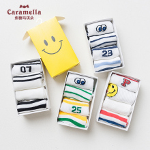 CARAMELLA2017春夏新款运动型船袜童袜时尚透气笑脸短袜子棉袜